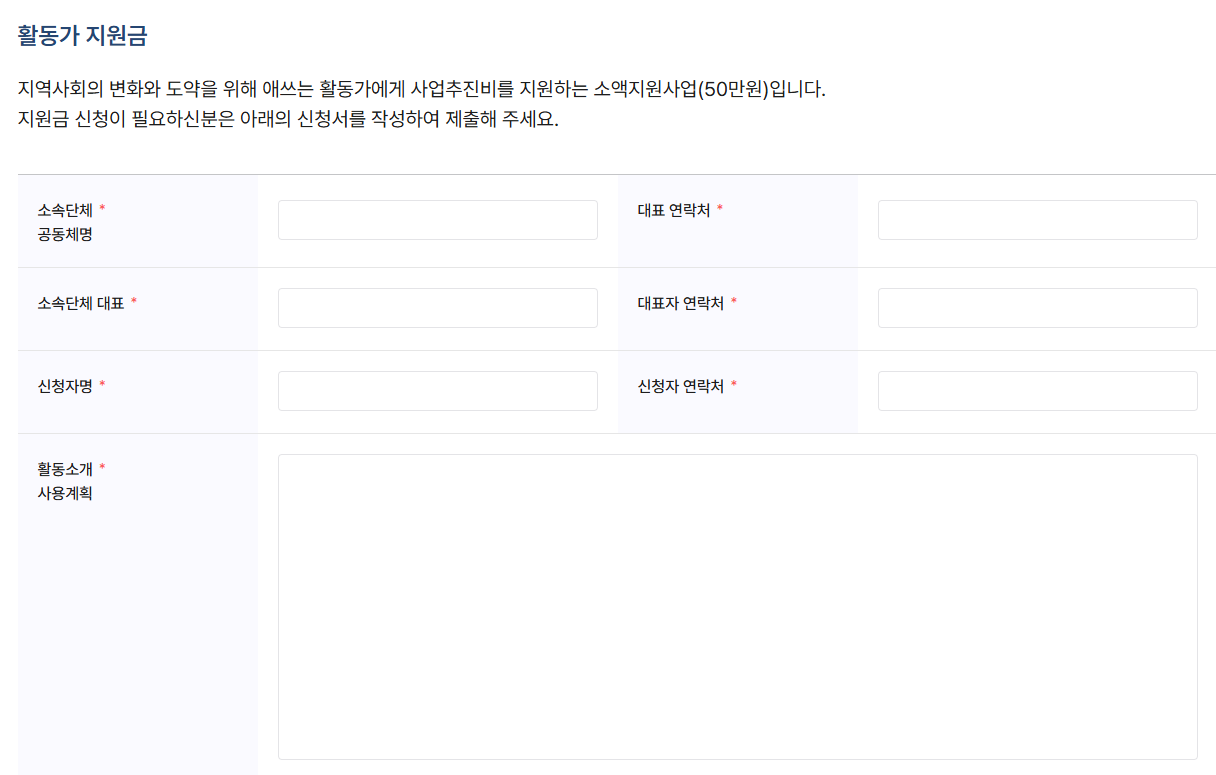 신청대상: 시민사회단체, 비영리조직, 사회적협동조합, 마을공동체, 개인 활동가 등
