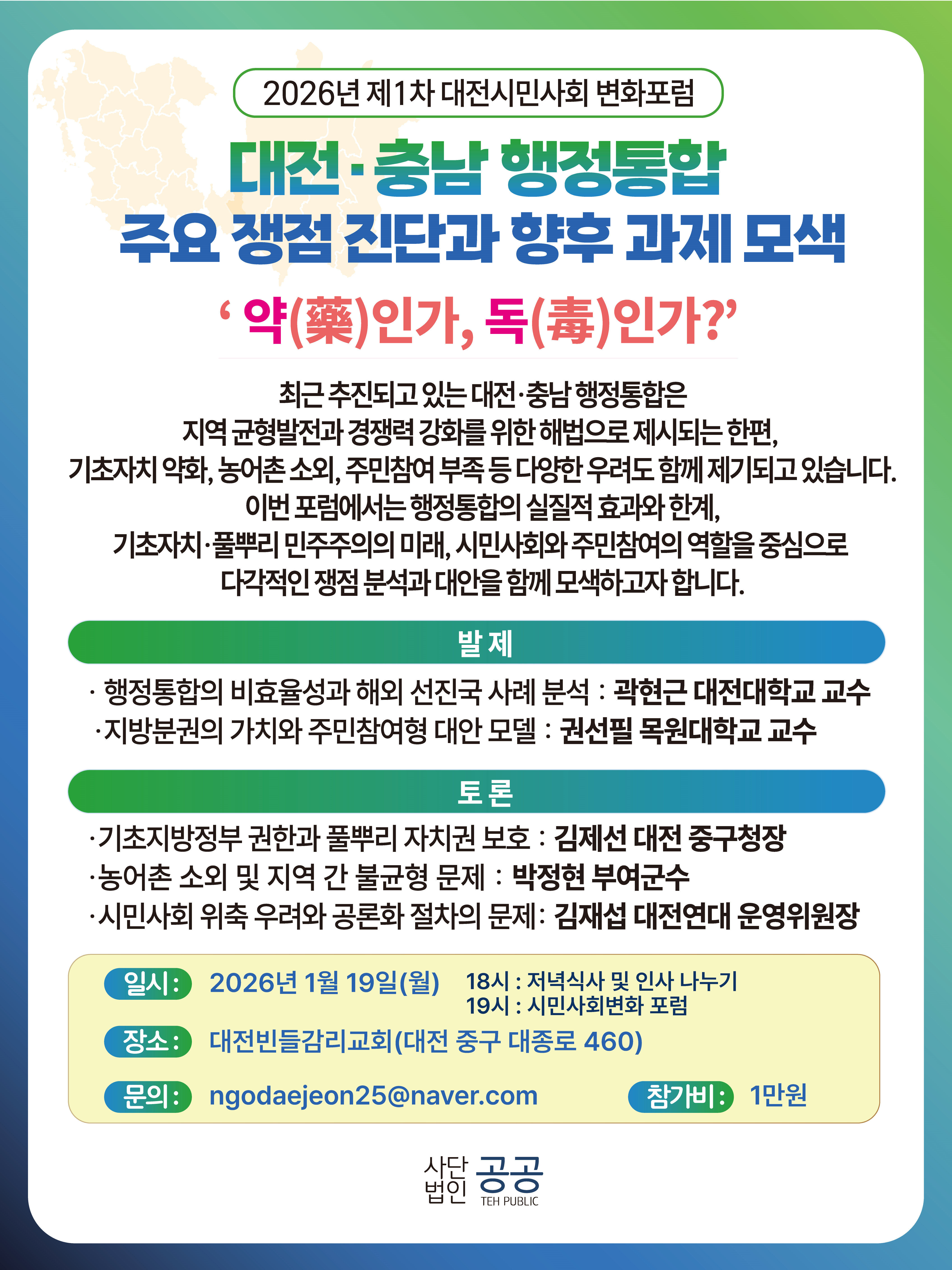 2026 시민사회변화포럼 개최 안내(대전충남통합 이슈 쟁점 진단))